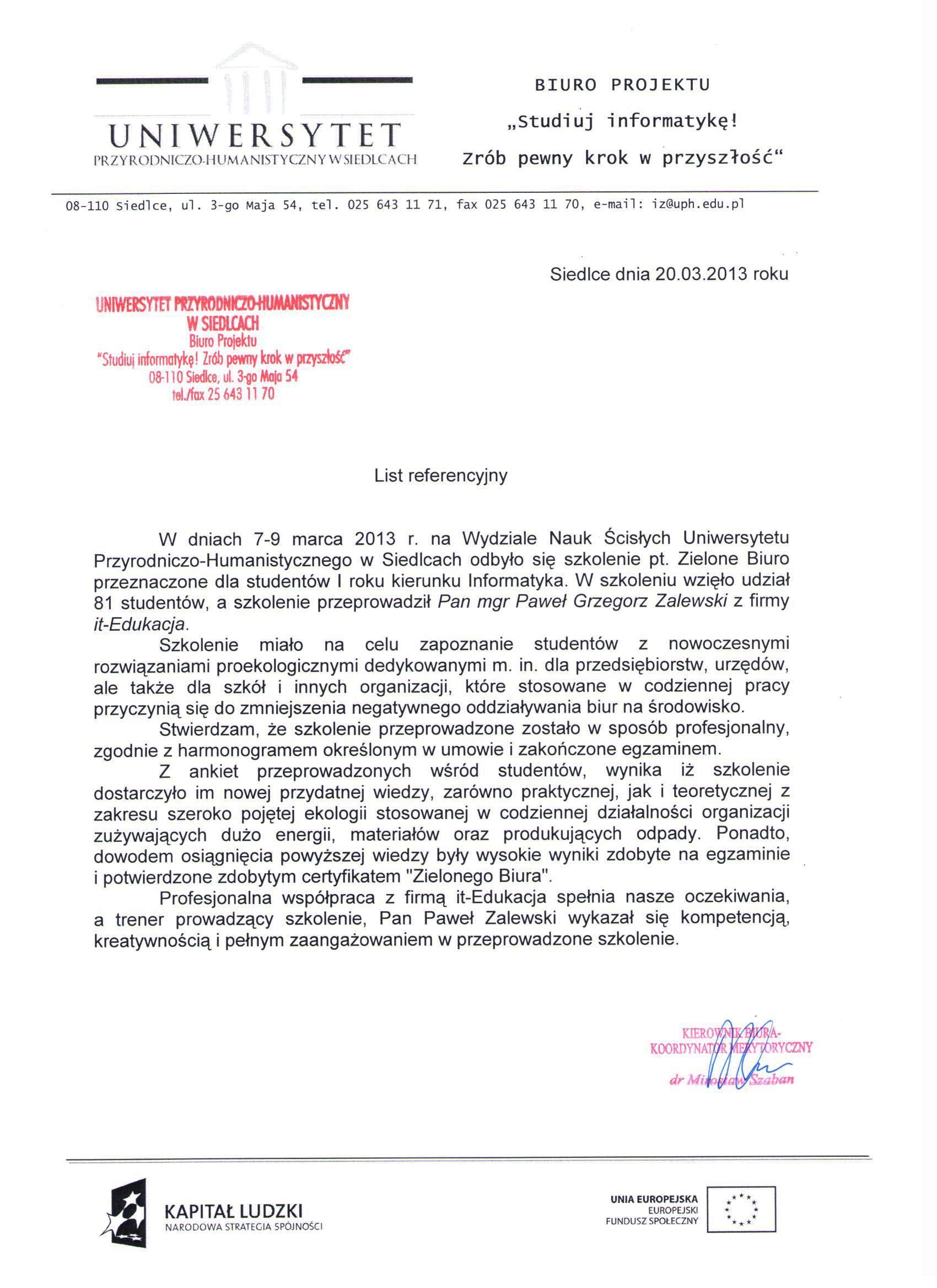 zrealizowane dla Uniwersytetu Przyrodniczo-Humanistycznego w